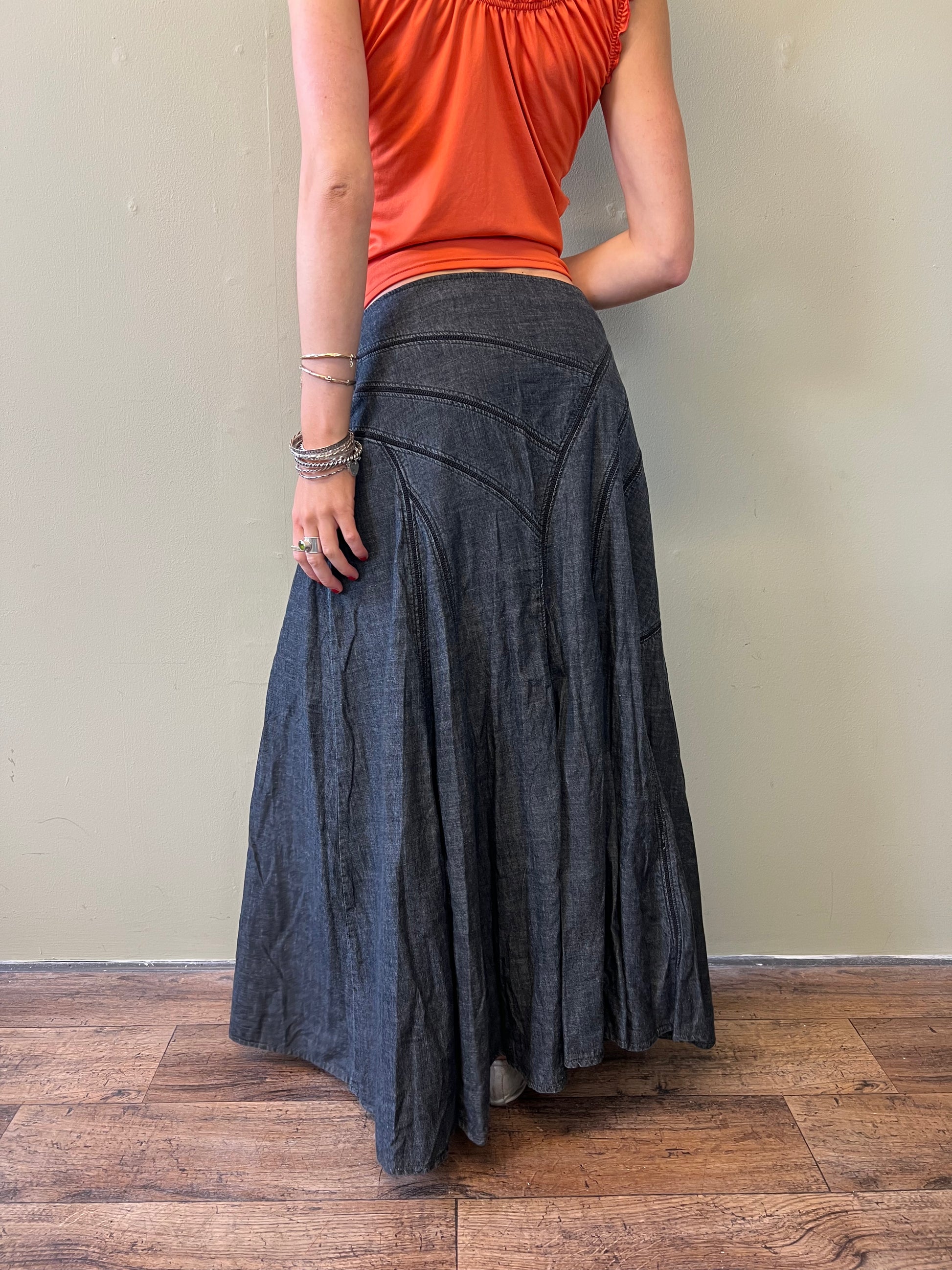 dark denim maxi skirt