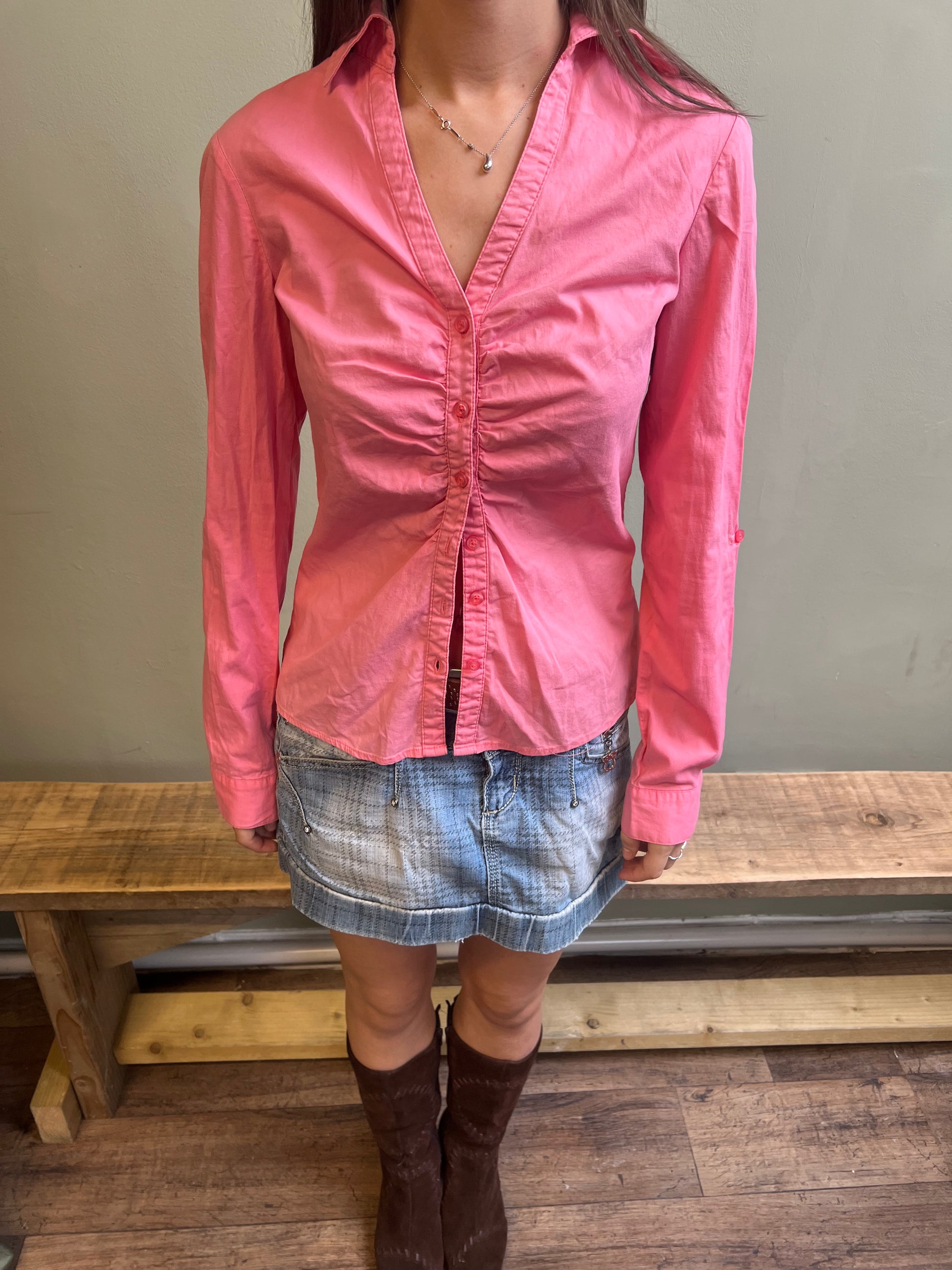 vintage 00s pink shirt, 98% cotton